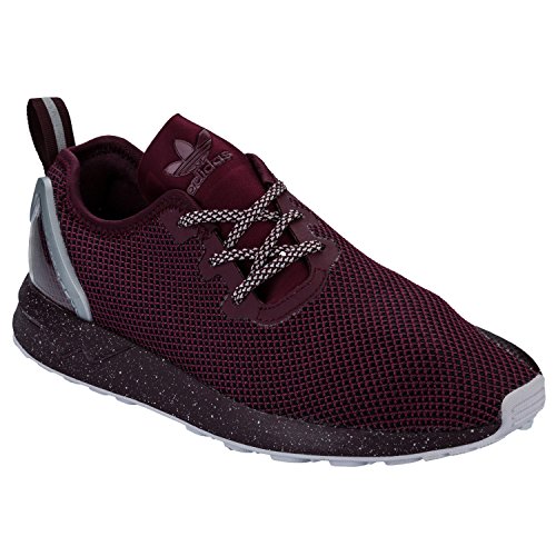 - Mens adidas Originals ZX Flux Adv Asymmetrical Trainers in burgundy.- The iconic ZX design reinvented as a modern minimalist sneaker- Mesh upper with a clear TPU heel cage- Asymmetrical lacing with integrated eyelets- Comfortable textile lining.- Injected-moulded EVA midsole for lightweight cushioning- Grippy rubber outsole- Textile and synthetic upper, Textile lining, Synthetic sole.- Ref: AQ6658